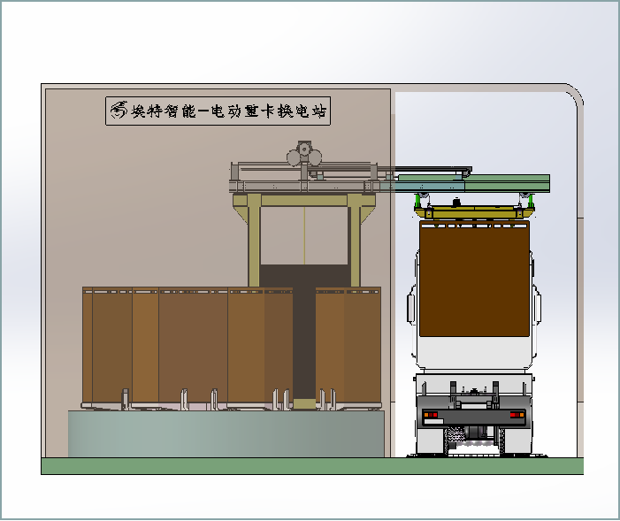 智能換電機(jī)器人、電池專用吊具、車載電池自動(dòng)定位系統(tǒng)、車輛導(dǎo)向、充電底座、消防系統(tǒng)、道閘、顯示大屏、管控系統(tǒng)、監(jiān)控等。
